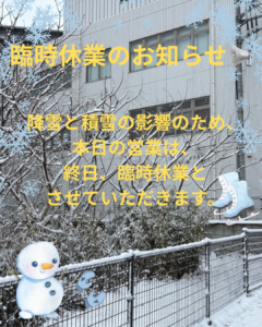 臨時休業のお知らせ⛄